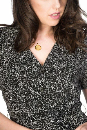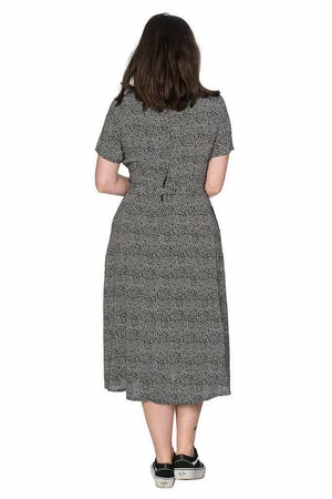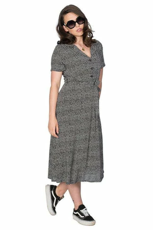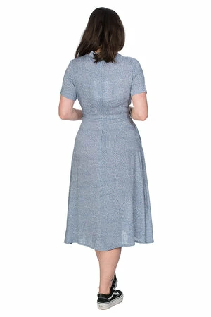 Make a stylish statement with this lovely rockabilly dress from Banned Apparel! This look is effortless. The dress is available in black or blue color.