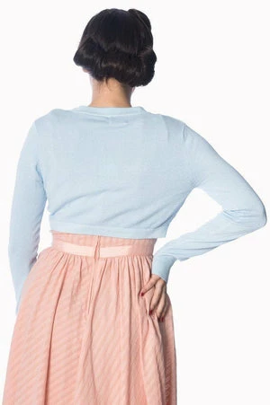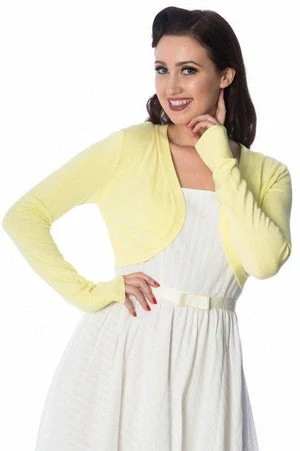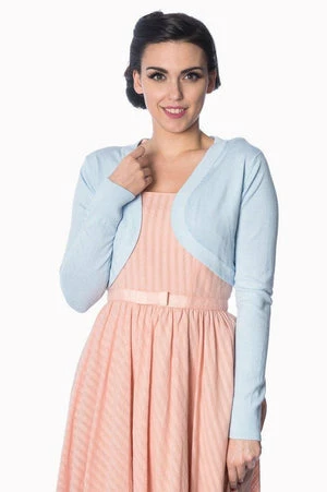 A remarkable, rockabilly style, ladies bolero from Banned Apparel, the flickers bolero. This design has a stretchable fabric, long sleeves and ribbed cuffs an ideal addition to complete any retro or vintage outfit.
