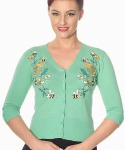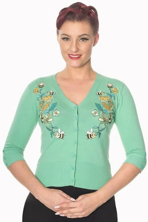 A superb rockabilly ladies cardigan from Banned Apparel the “flickers cardigan”, with an eye-catching embroidery of flowers and bumble bees. This style is available in a choice of colours.