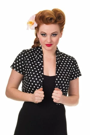 Show your style with this “Higher Love Bolero” from Banned. Made from 90% polyamide and 10% elastane in a cropped design, open front and a slimming design. Be stylish without hiding who you are when you wear this.