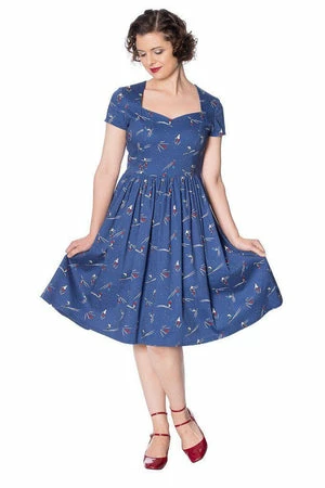 This spectacular rockabilly dress from Banned Apparel, can be worn with heeled sandals for a more casual look.