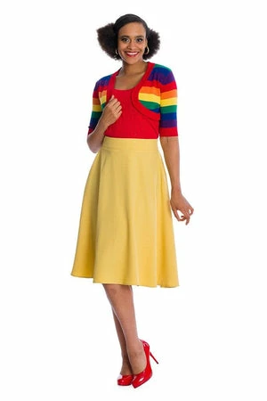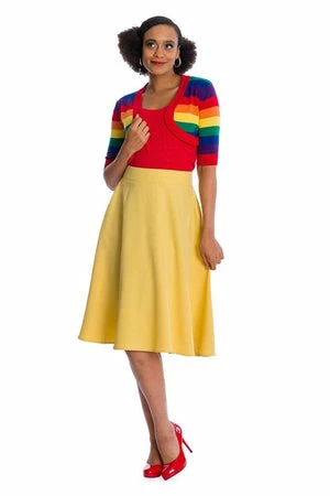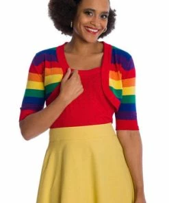 The Banned “Love Wins Bolero” will give you that extra bit of glamour over your favorite dress or top. Featuring an open front, rainbow design, stretchy fit, short finish, ribbed hem and cuffs.