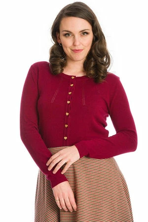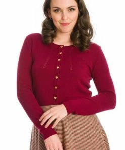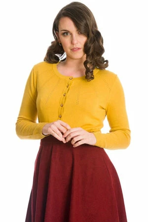 Elevate your style effortlessly with this cute and modish rockabilly cardigan from Banned Apparel! The style is available in aubergine, green or mustard color and upto plus sizes!
