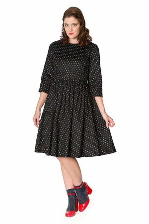 Grace the season with this ultra fashionable rockabilly dress from Banned Apparel.