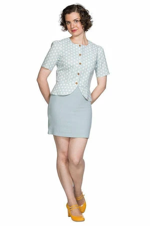 Stay perfectly styled in this sumptuous rockabilly blouse from Banned Apparel. The style is available in mint, white or black color.
