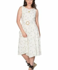 The midi dress has all over floral print, rear detail waist belt, round neckline, invisible centre and back zipper.