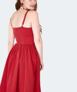 Dr Faust White Polka Dot Electric Red Rockabilly Midi Dress – Sophie