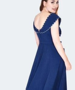 Voodoo Vixen Perry Lips And Hearts Embroidery Collar Knit Dress