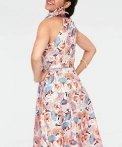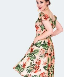 Voodoo Vixen Tropical Flammingo Print Off Shoulder Flare Dress