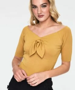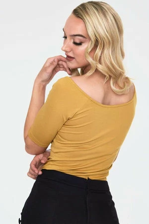 Watch those heads turn once you get this stupendous rockabilly top from Voodoo Vixen! The style is available in mustard, green or burgundy color.